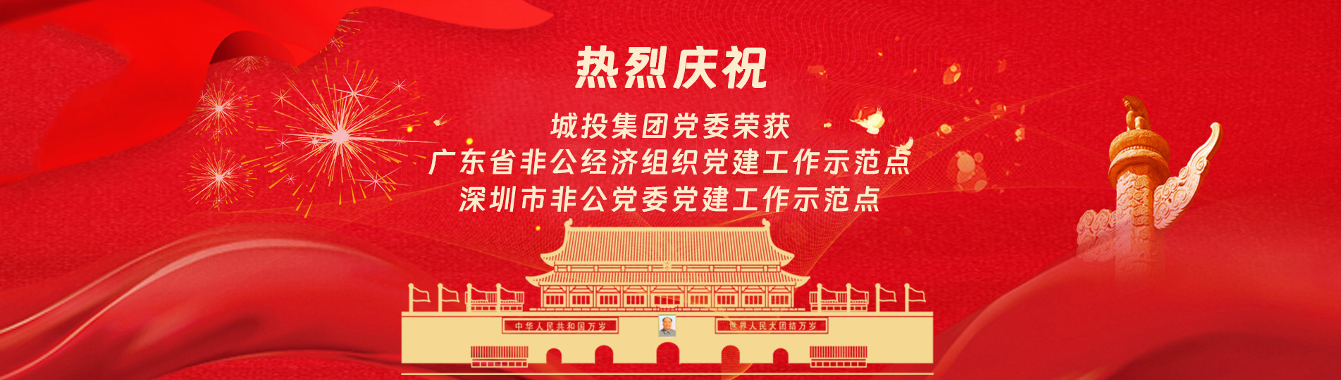 在上級(jí)黨委的正確領(lǐng)導(dǎo)下,在城投集團(tuán)的大力支持下,集團(tuán)黨委緊緊圍繞企業(yè)發(fā)展戰(zhàn)略,將黨建引領(lǐng)核心貫穿始終,以五心工程(即思政建設(shè)核心工程、經(jīng)營(yíng)發(fā)展中心工程、企業(yè)文化向心工程、黨建品牌匠心工程、服務(wù)基層愛(ài)心工程)為抓手,大膽探索,勇于突破和創(chuàng)新,不斷形成城投黨建特色,有效輸出城投實(shí)踐經(jīng)驗(yàn),充分發(fā)揮紅色引擎作用,先后獲得深圳市非公黨委黨建工作示范點(diǎn)深圳市兩新組織黨建工作示范點(diǎn)深圳市文明單位深圳市先進(jìn)基層黨組織廣東省非公有制經(jīng)濟(jì)領(lǐng)域黨建工作示范點(diǎn)等榮譽(yù)稱號(hào)。